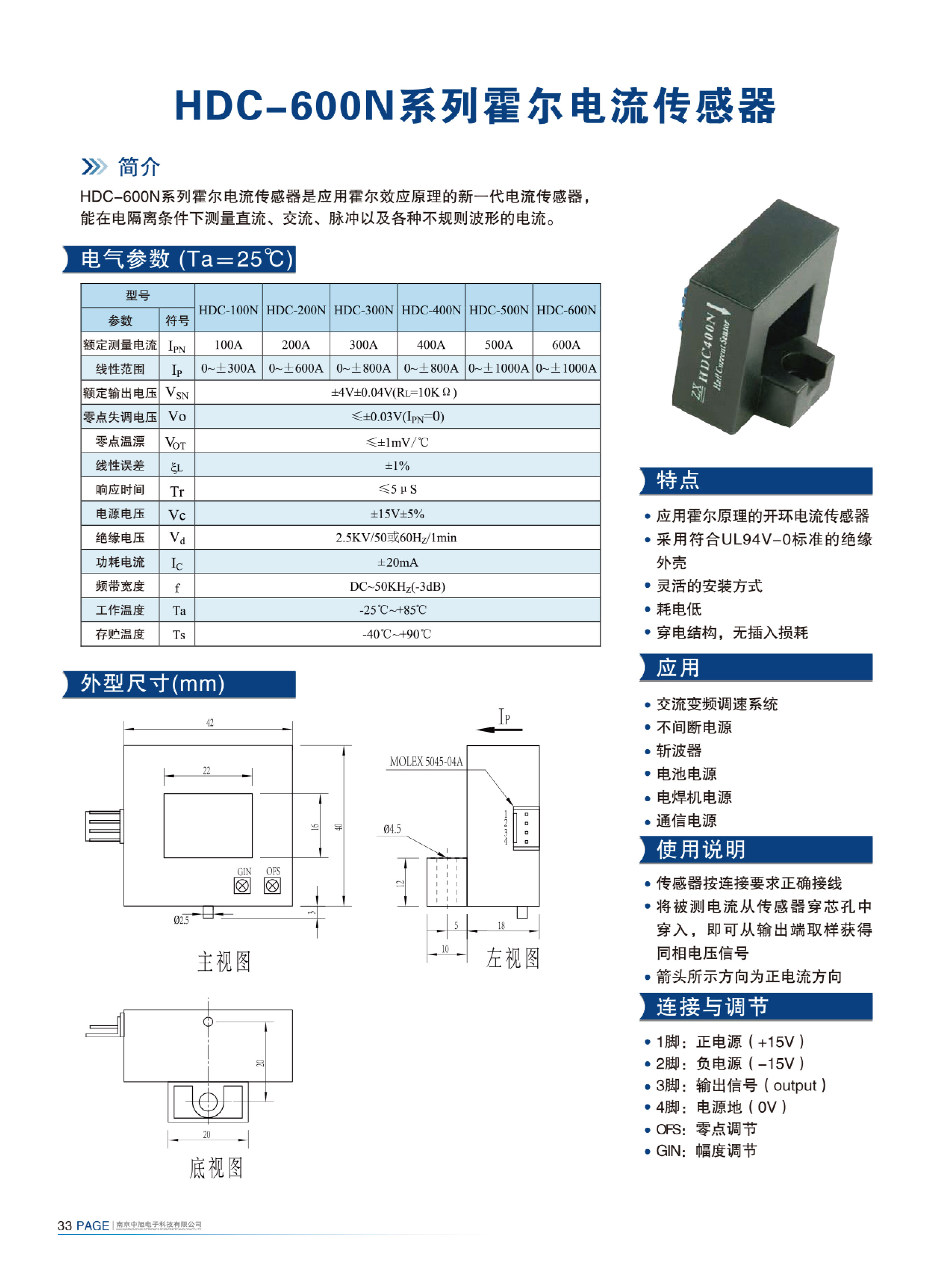 HDC-600N系列霍爾電流傳感器是應(yīng)用霍爾效應(yīng)原理的新一代電流傳感器,能在電隔離條件下測量直流、交流、脈沖以及各種不規(guī)則波形的電流。